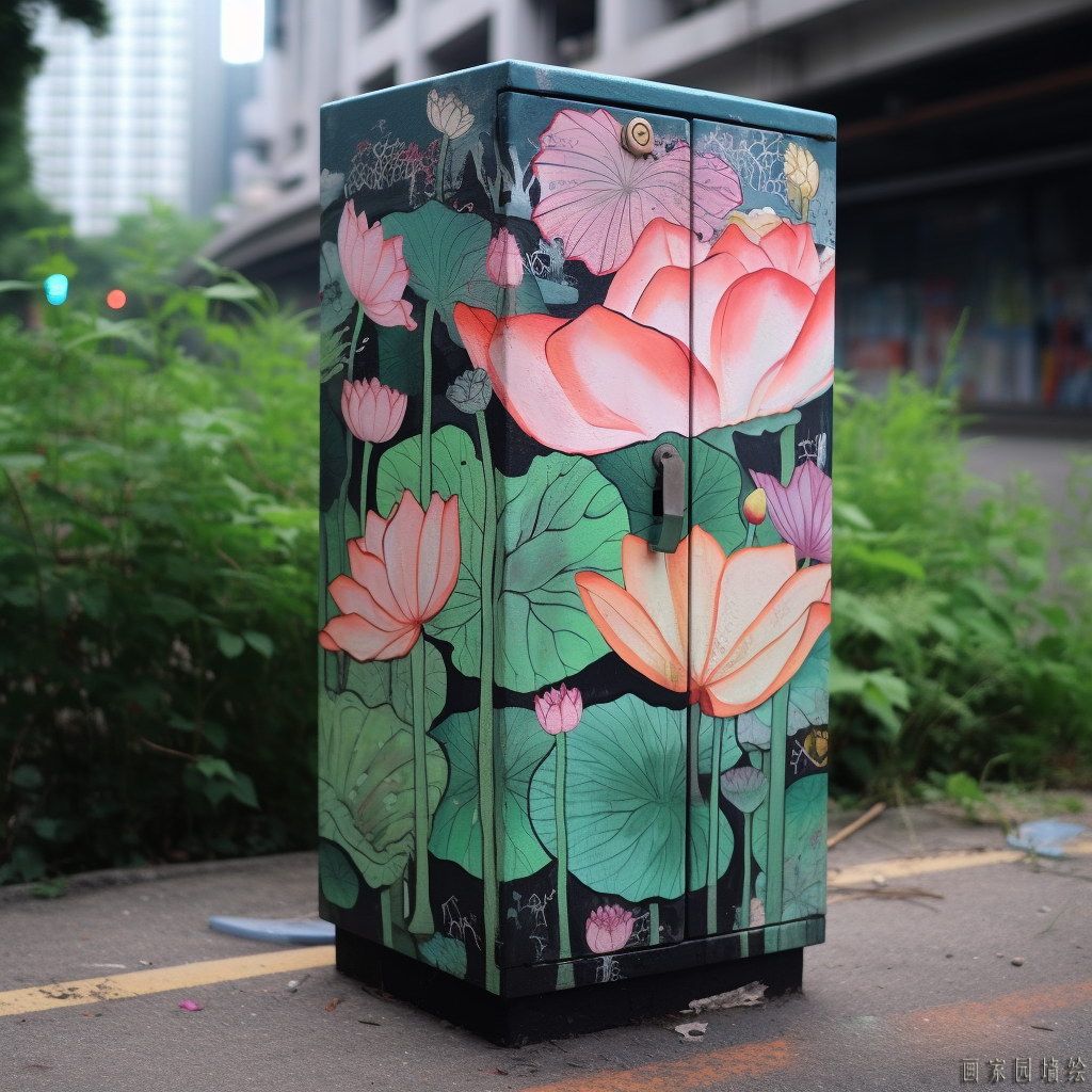 色彩斑斓的山水美景、梅兰竹菊、荷花、交通文明宣传画……一个个配电箱上不再是各种乱贴乱涂的小广告,经过彩绘师的勾勒描绘和画图上色,配电箱摇身一变成为主题鲜明、内容丰富的创建文明城市“宣传墙”。